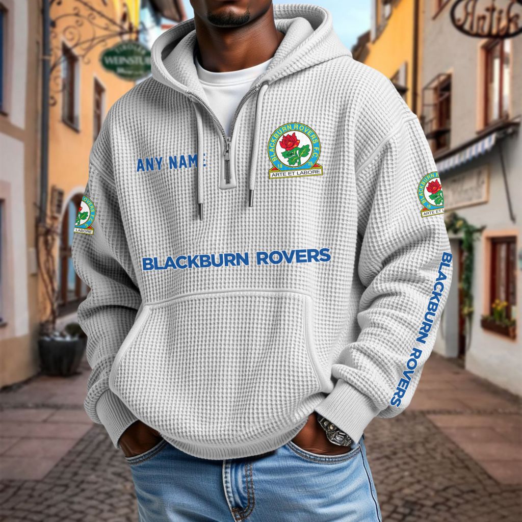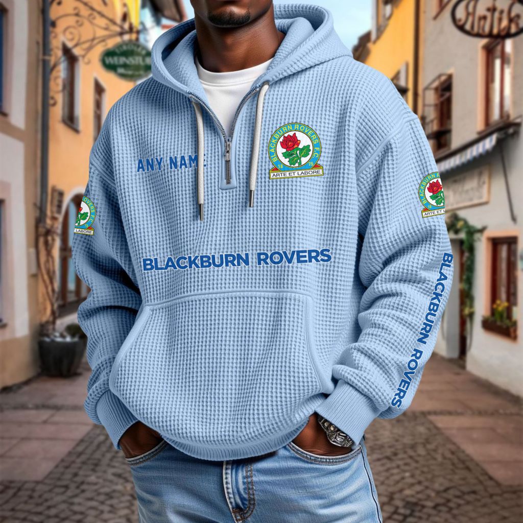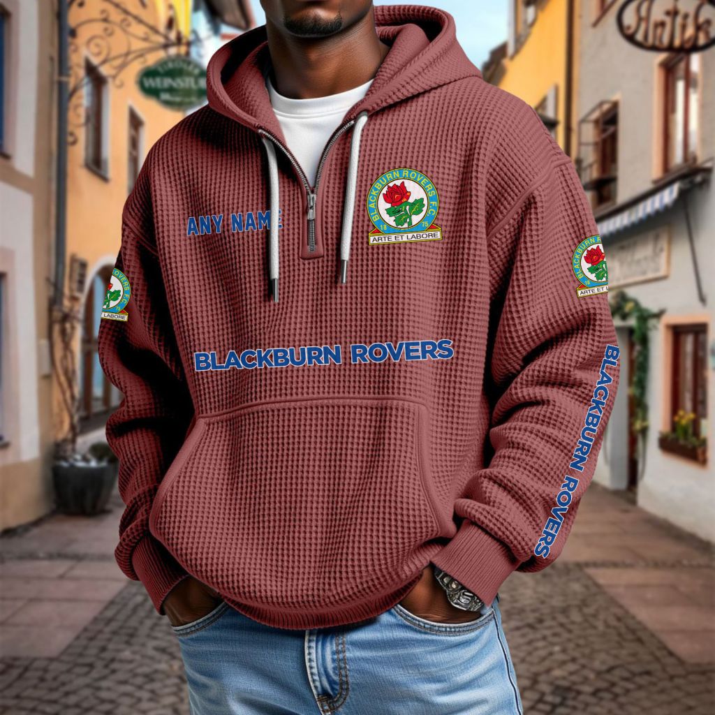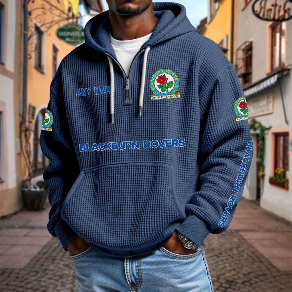 Blackburn Rovers Personalized Name Waffle Quarter Zip Hoodie Design ST2501