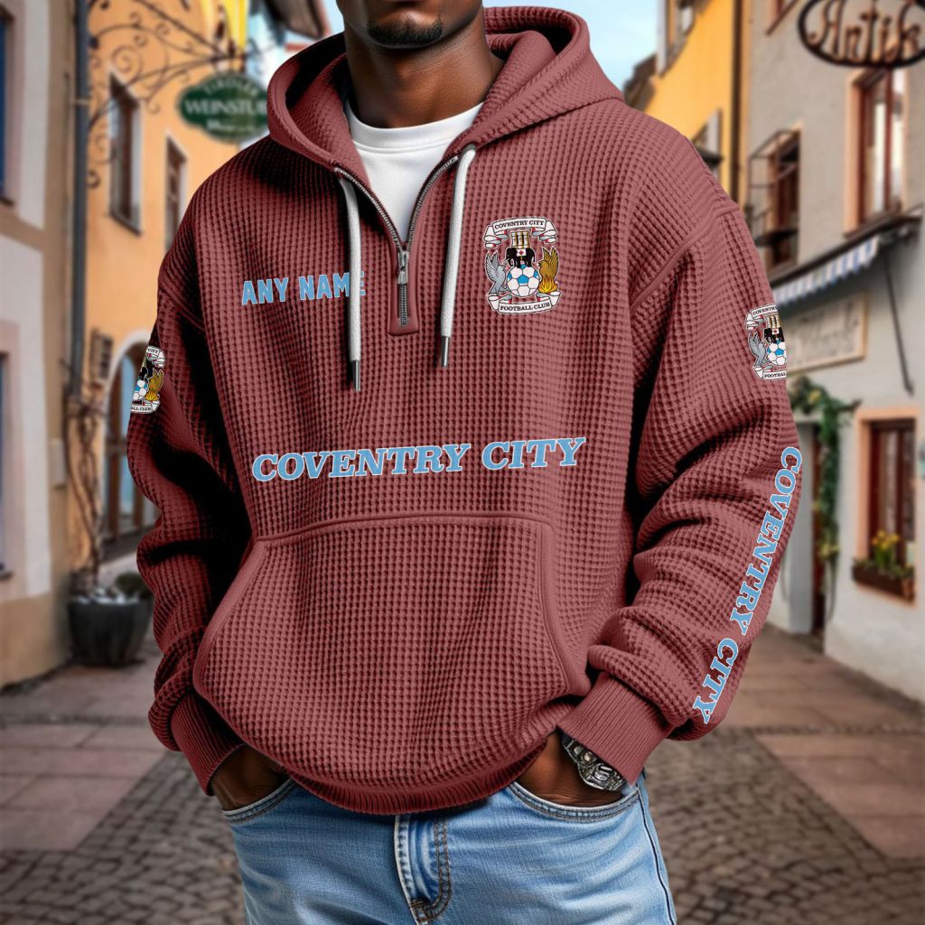 Coventry City Personalized Name Waffle Quarter Zip Hoodie Design ST2501