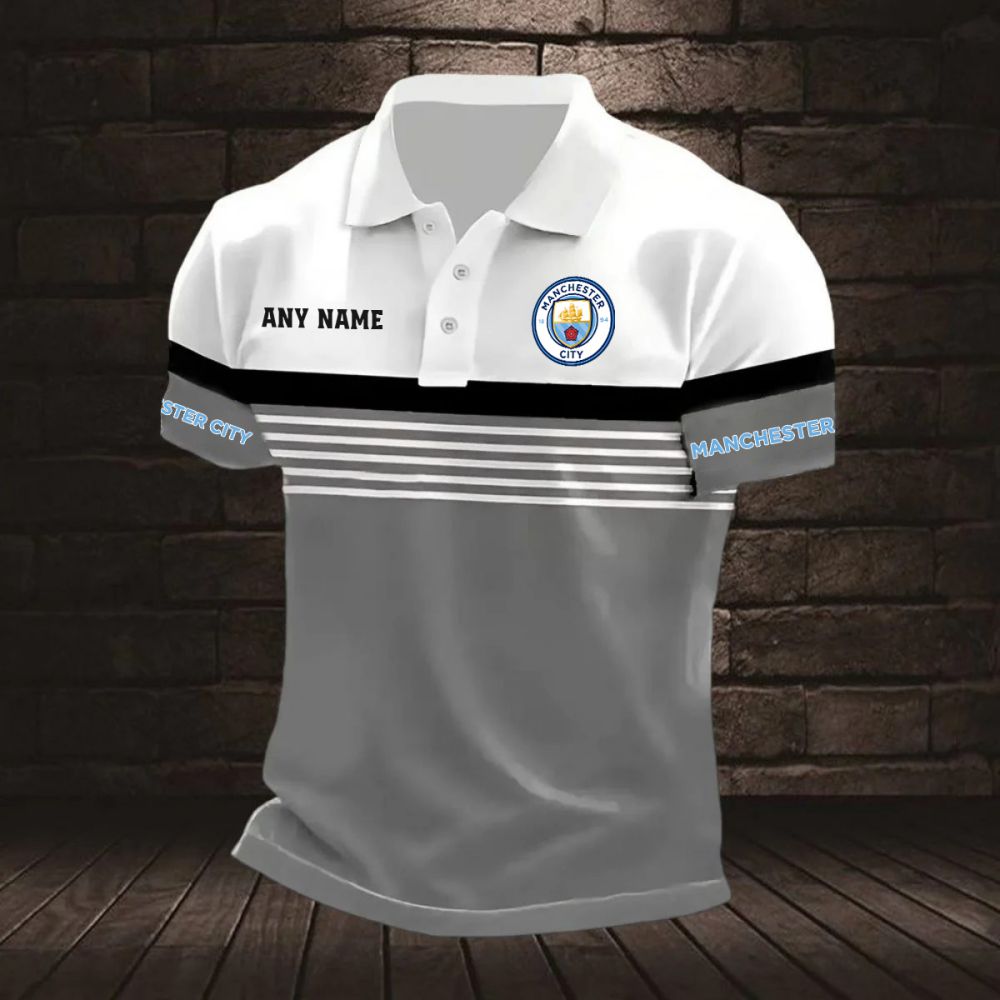 Manchester City Personalized Name Stripped Multi Color Polo Design ST2501