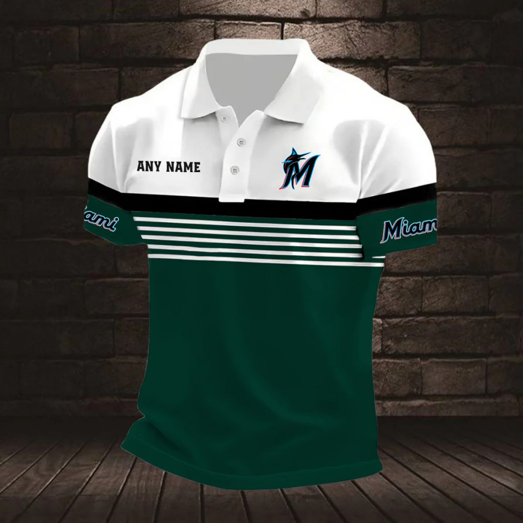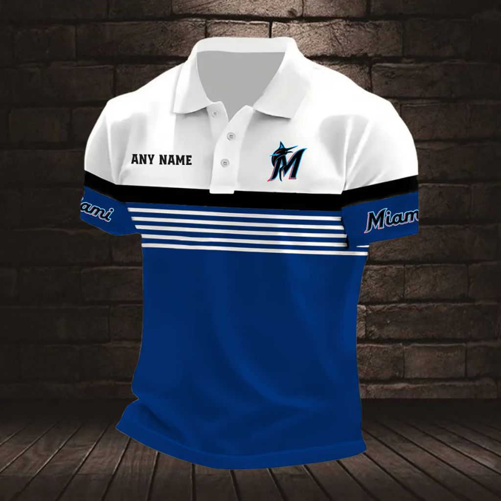 MLB Miami Marlins Personalized Name Stripped Multi Color Polo Design ST2501