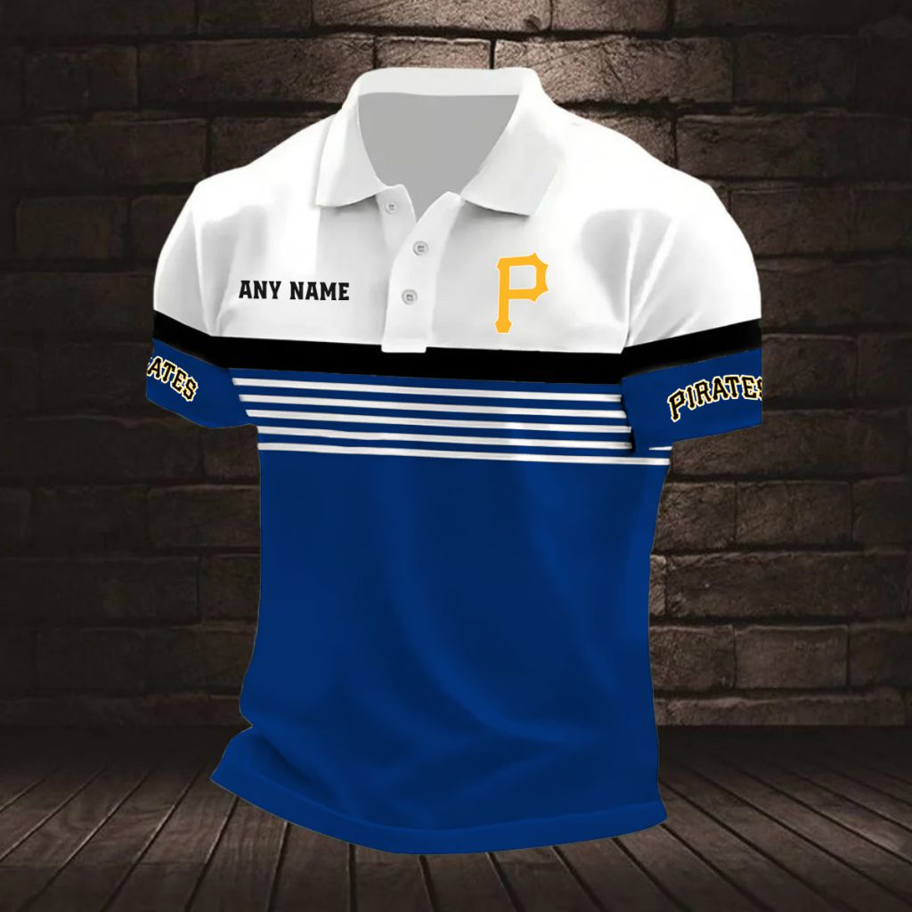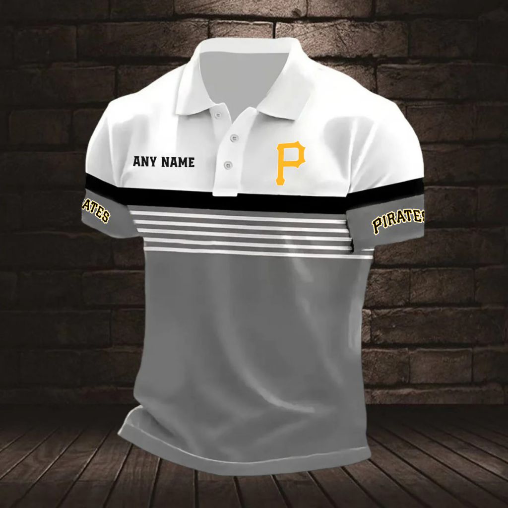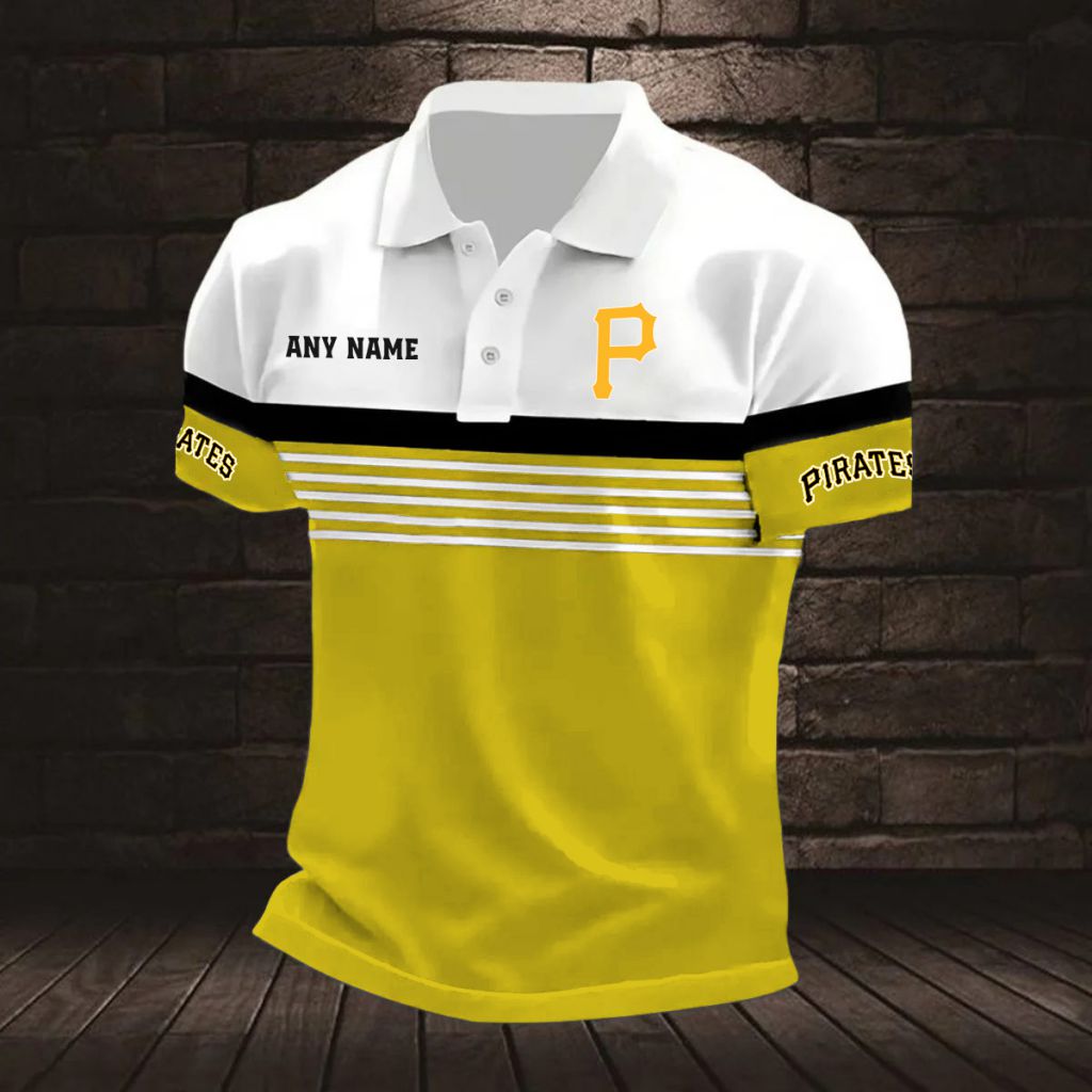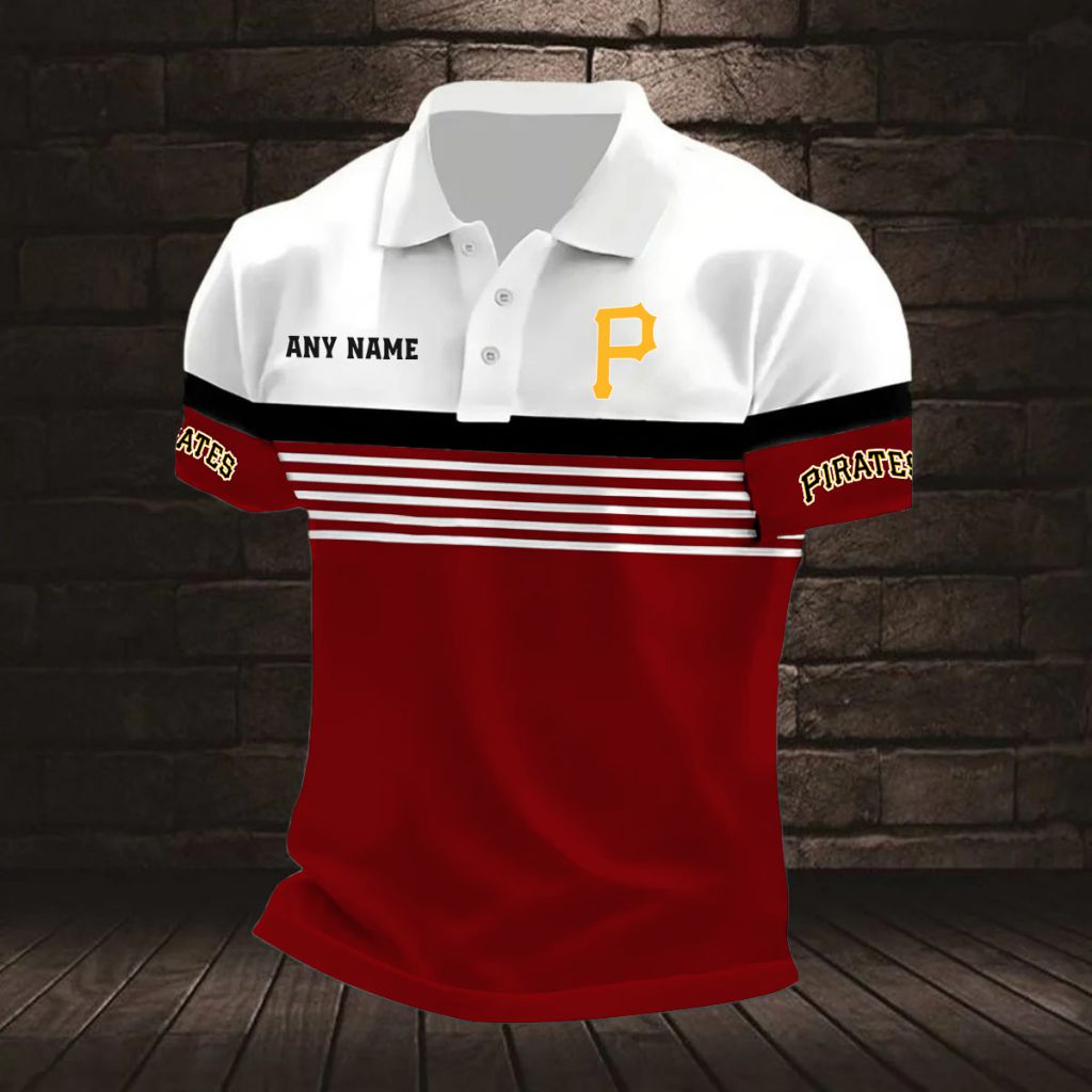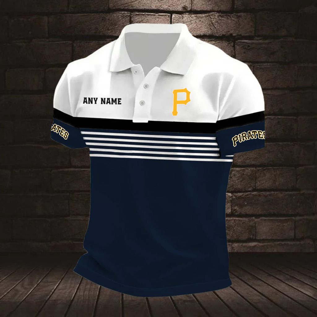 MLB Pittsburgh Pirates Personalized Name Stripped Multi Color Polo Design ST2501