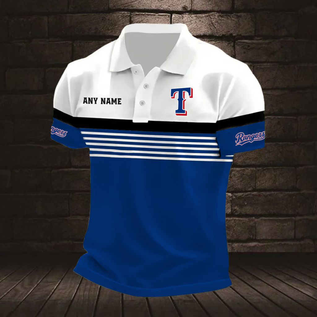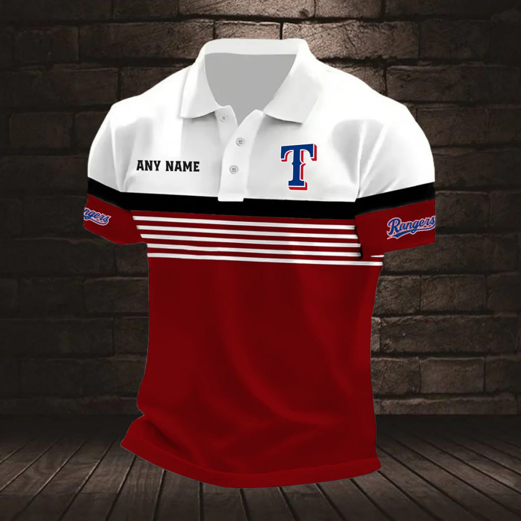 MLB Texas Rangers Personalized Name Stripped Multi Color Polo Design ST2501