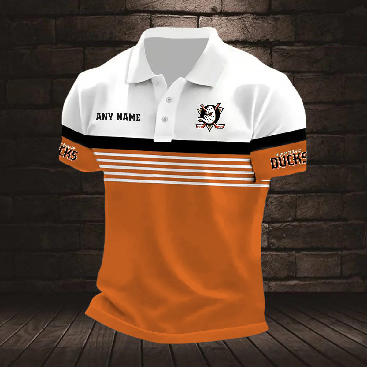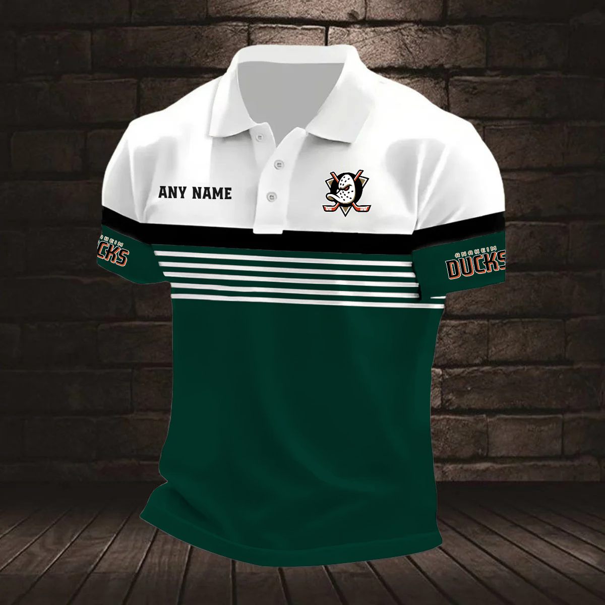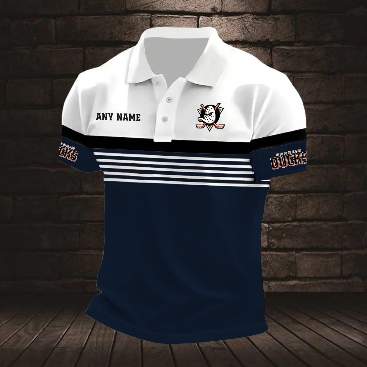 NHL Anaheim Ducks Personalized Name Stripped Multi Color Polo Design ST2501