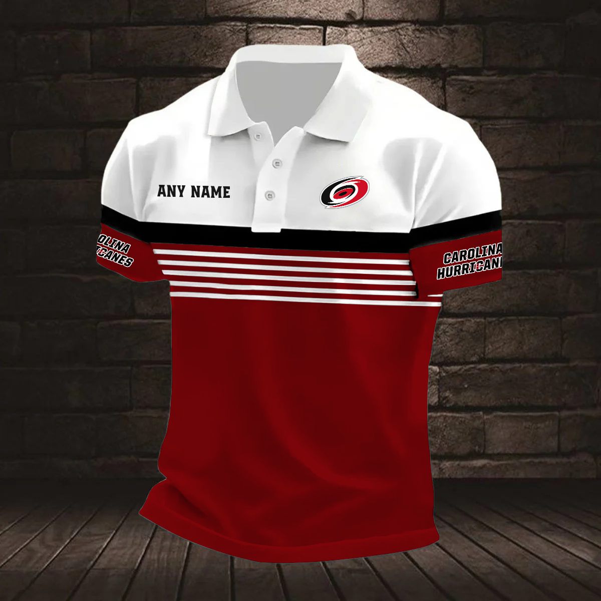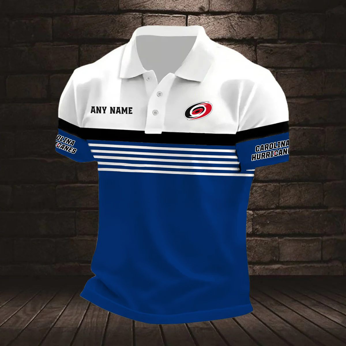 NHL Carolina Hurricanes Personalized Name Stripped Multi Color Polo Design ST2501