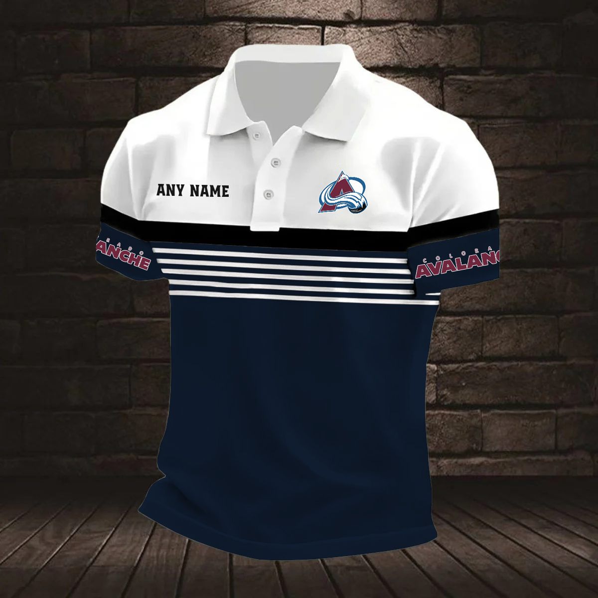 NHL Colorado Avalanche Personalized Name Stripped Multi Color Polo Design ST2501