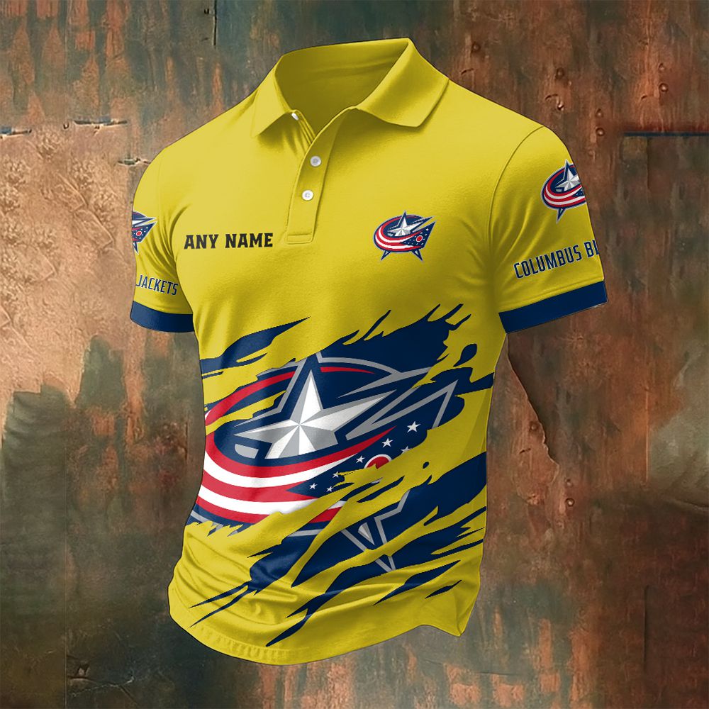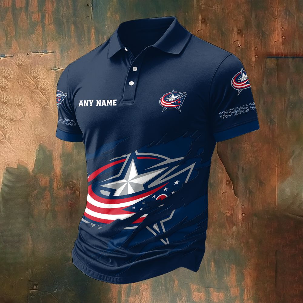 NHL Columbus Blue Jackets Personalized Name Multi Color Polo ST2502