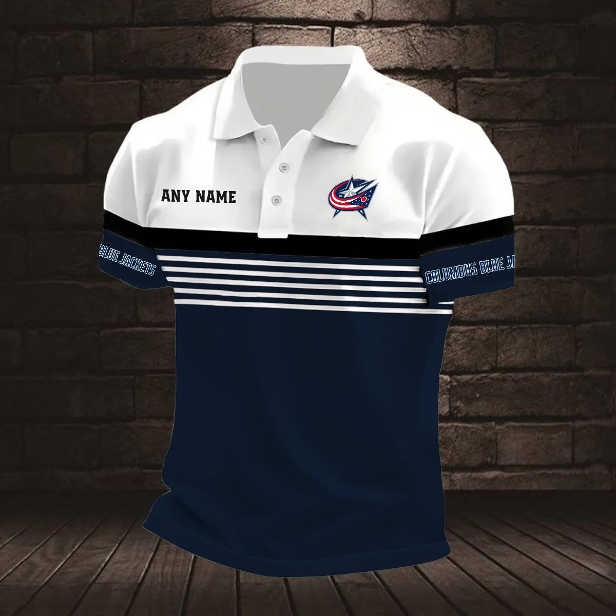 NHL Columbus Blue Jackets Personalized Name Stripped Multi Color Polo Design ST2501