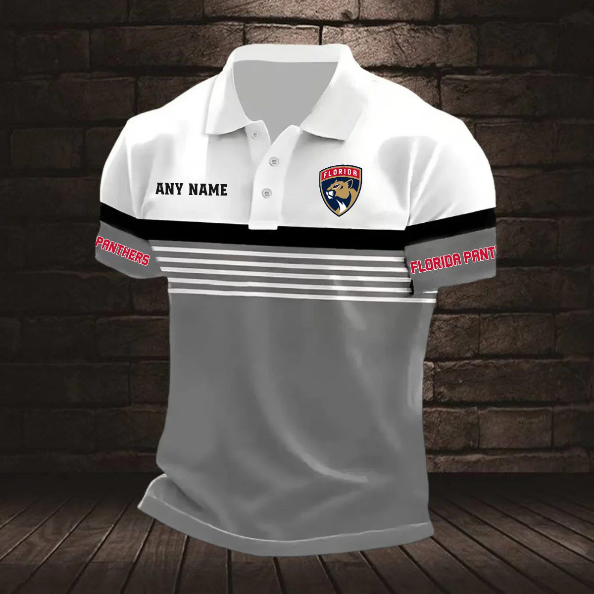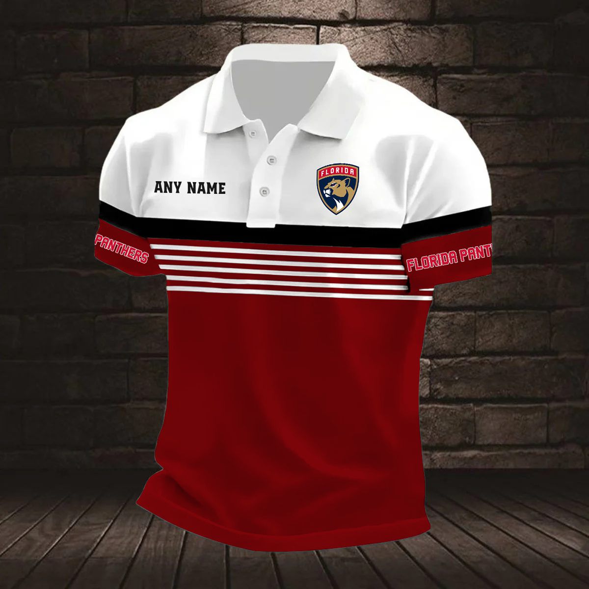 NHL Florida Panthers Personalized Name Stripped Multi Color Polo Design ST2501