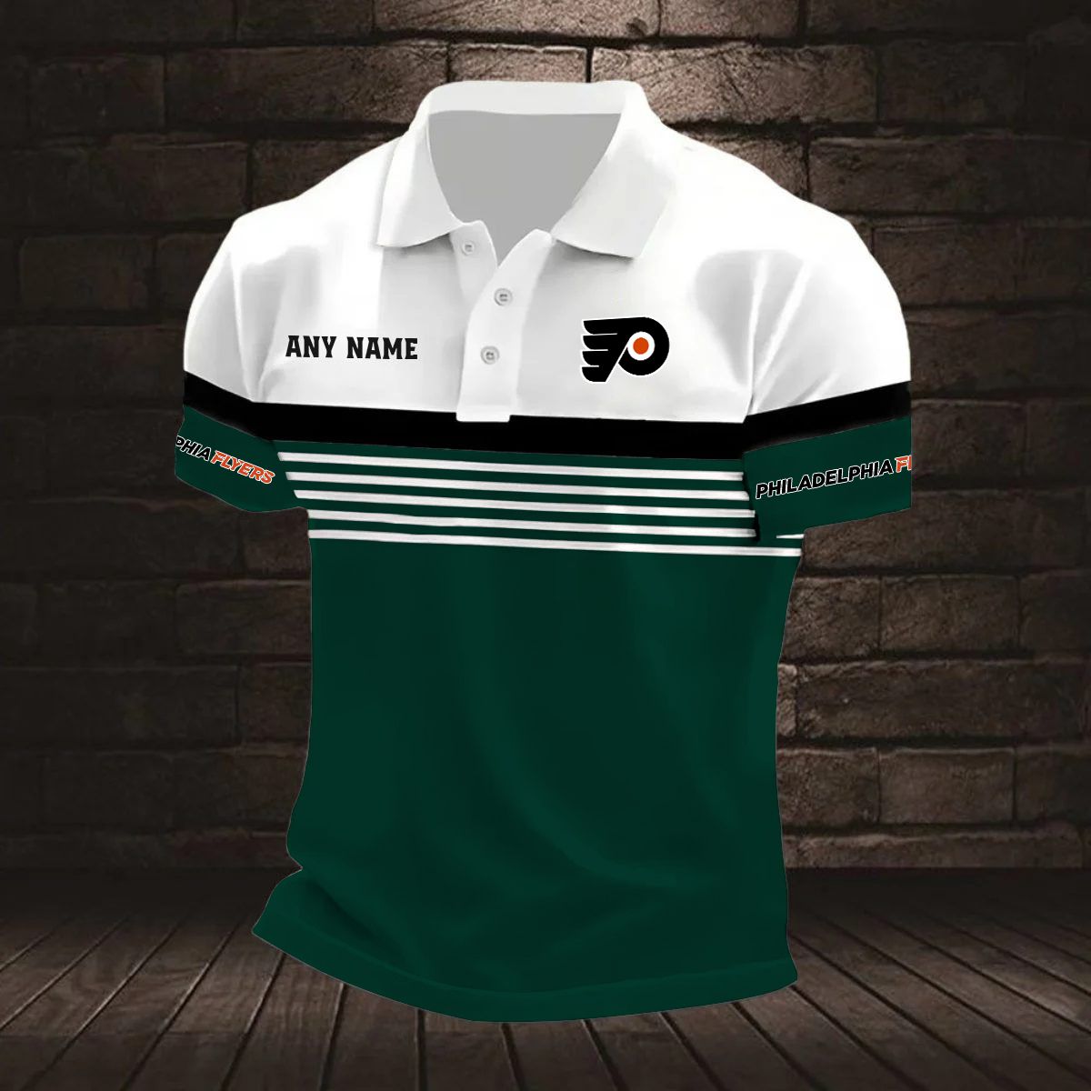 NHL Philadelphia Flyers Personalized Name Stripped Multi Color Polo Design ST2501