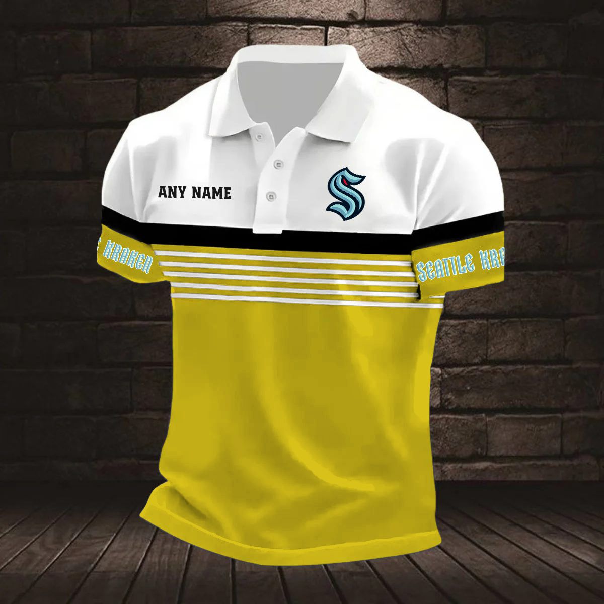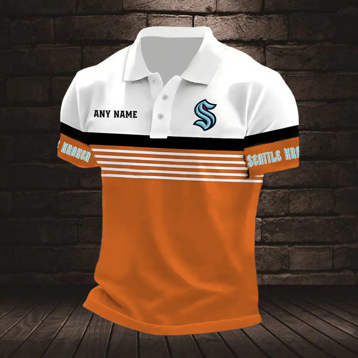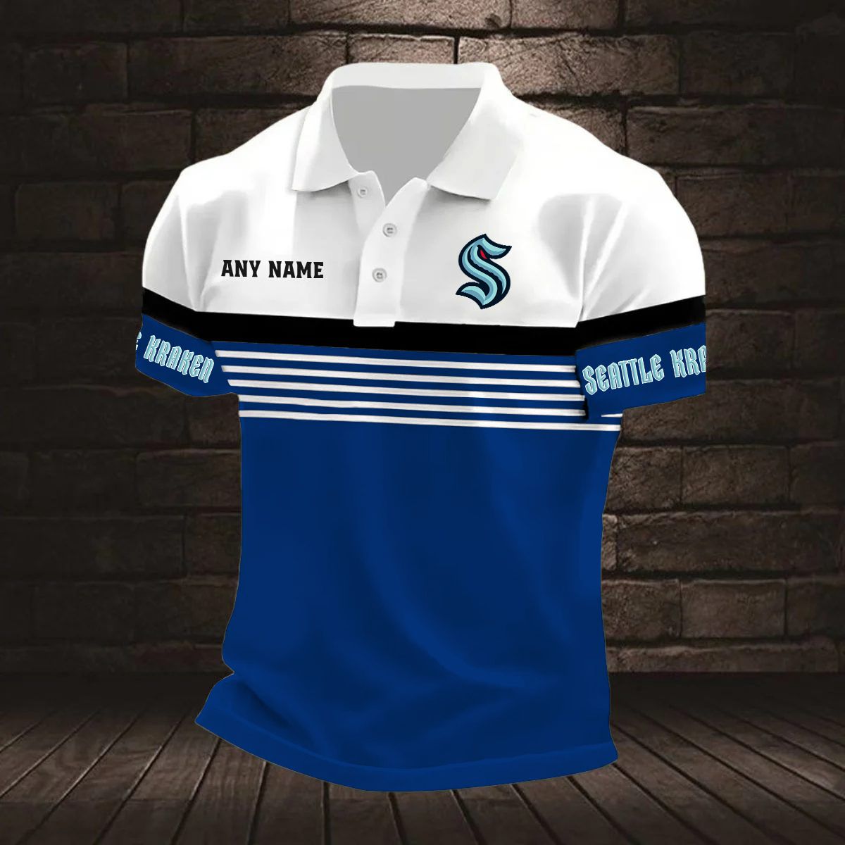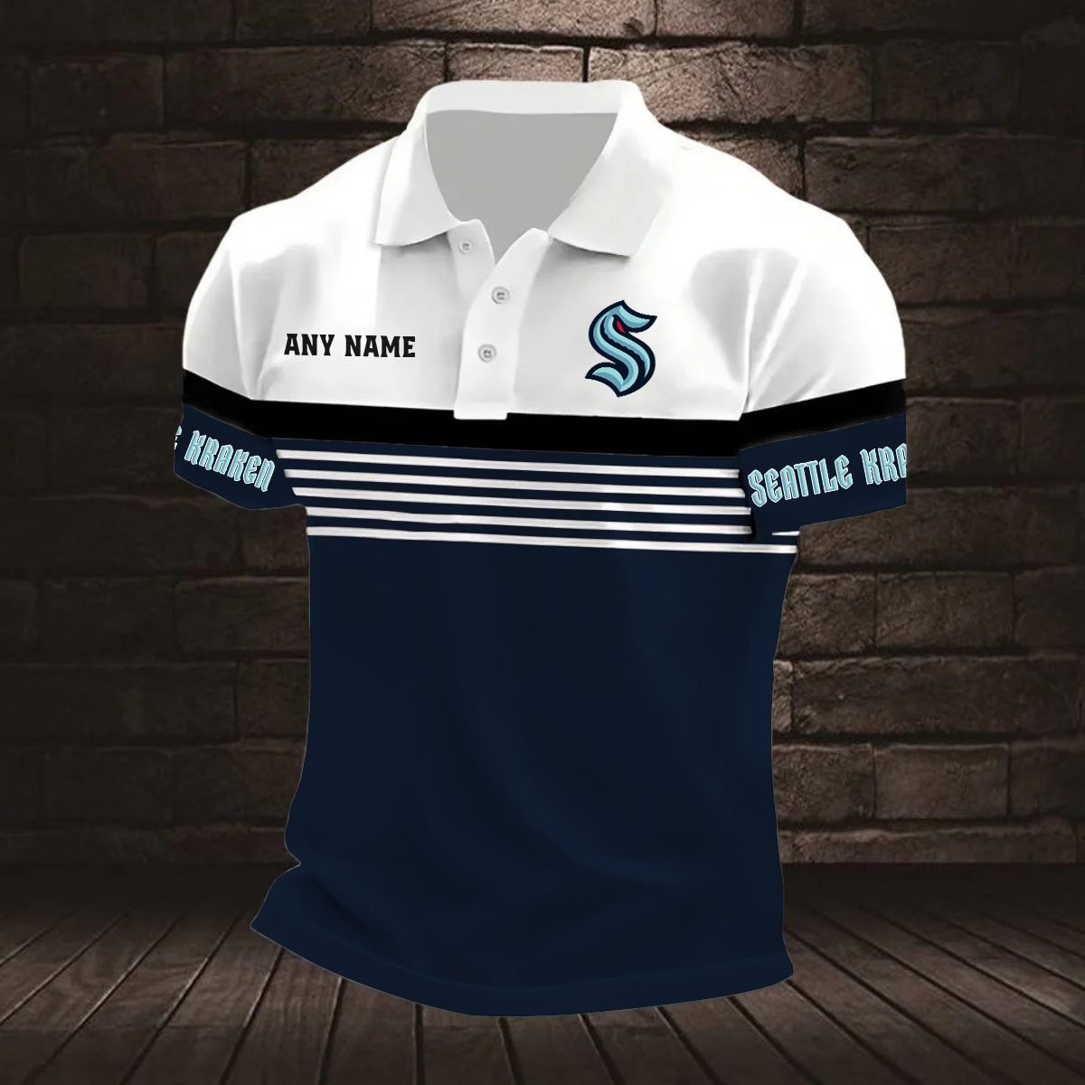 NHL Seattle Kraken Personalized Name Stripped Multi Color Polo Design ST2501