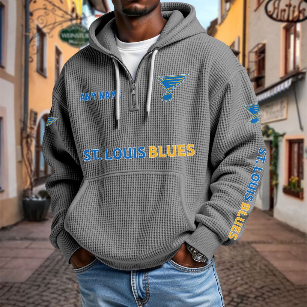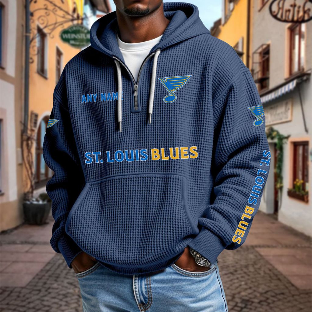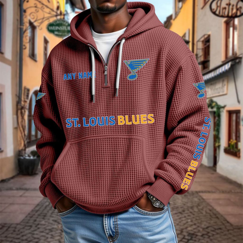 - Stay effortlessly stylish and comfortable with this premium waffle-textured hoodie. Designed with a relaxed fit and soft, breathable fabric, it’s perfect for layering or wearing on its own. The half-zip front and adjustable drawstring hood add modern versatility, while the kangaroo pocket keeps your hands warm and essentials close.