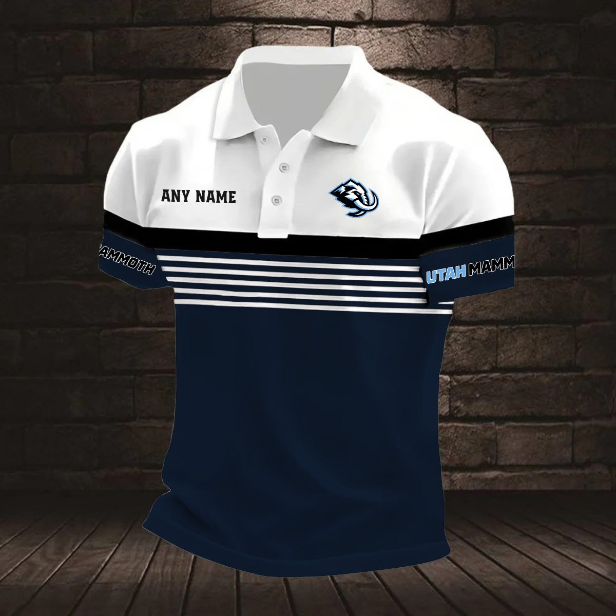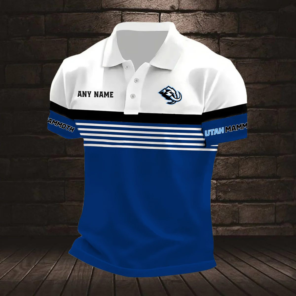 NHL Utah Mammoth Personalized Name Stripped Multi Color Polo Design ST2501