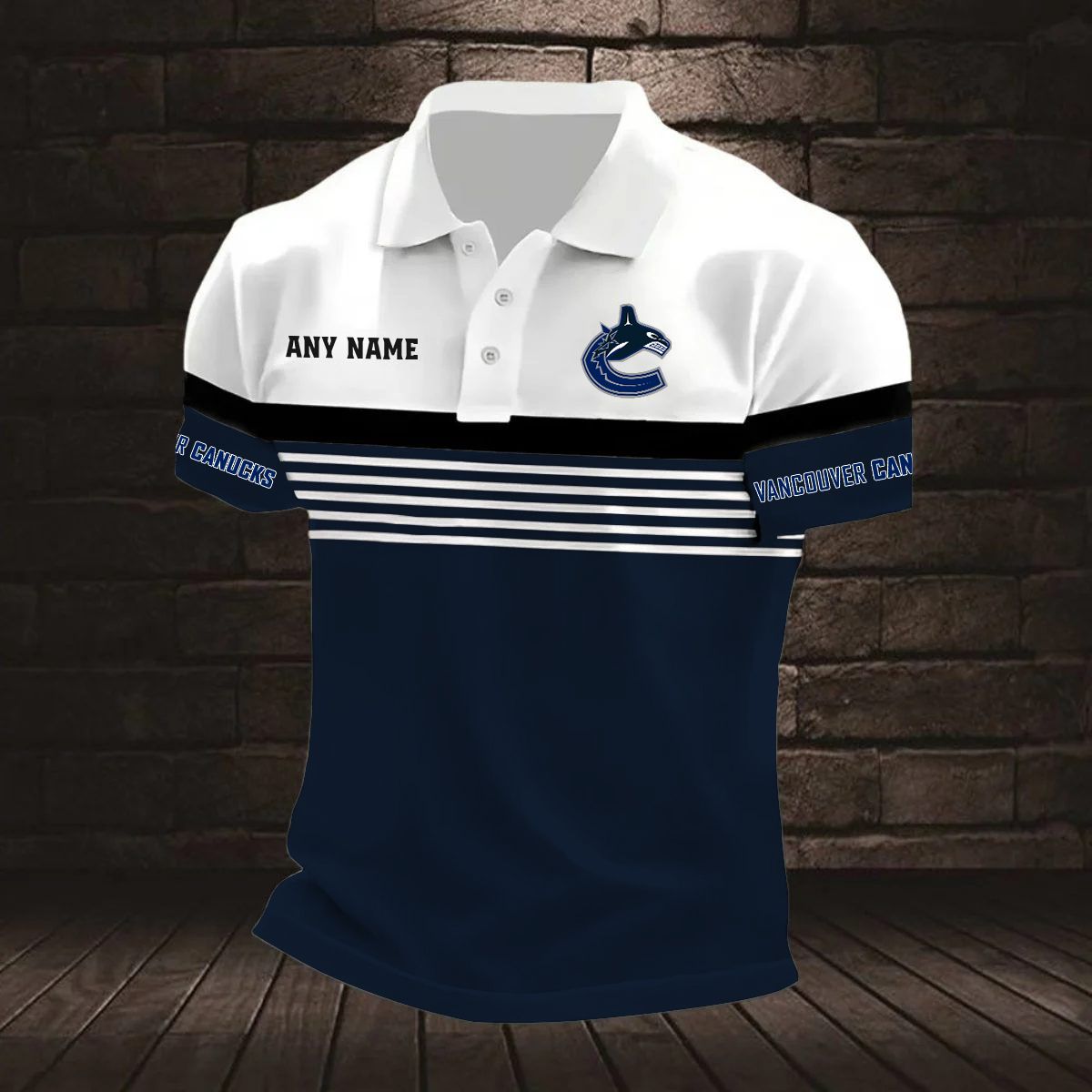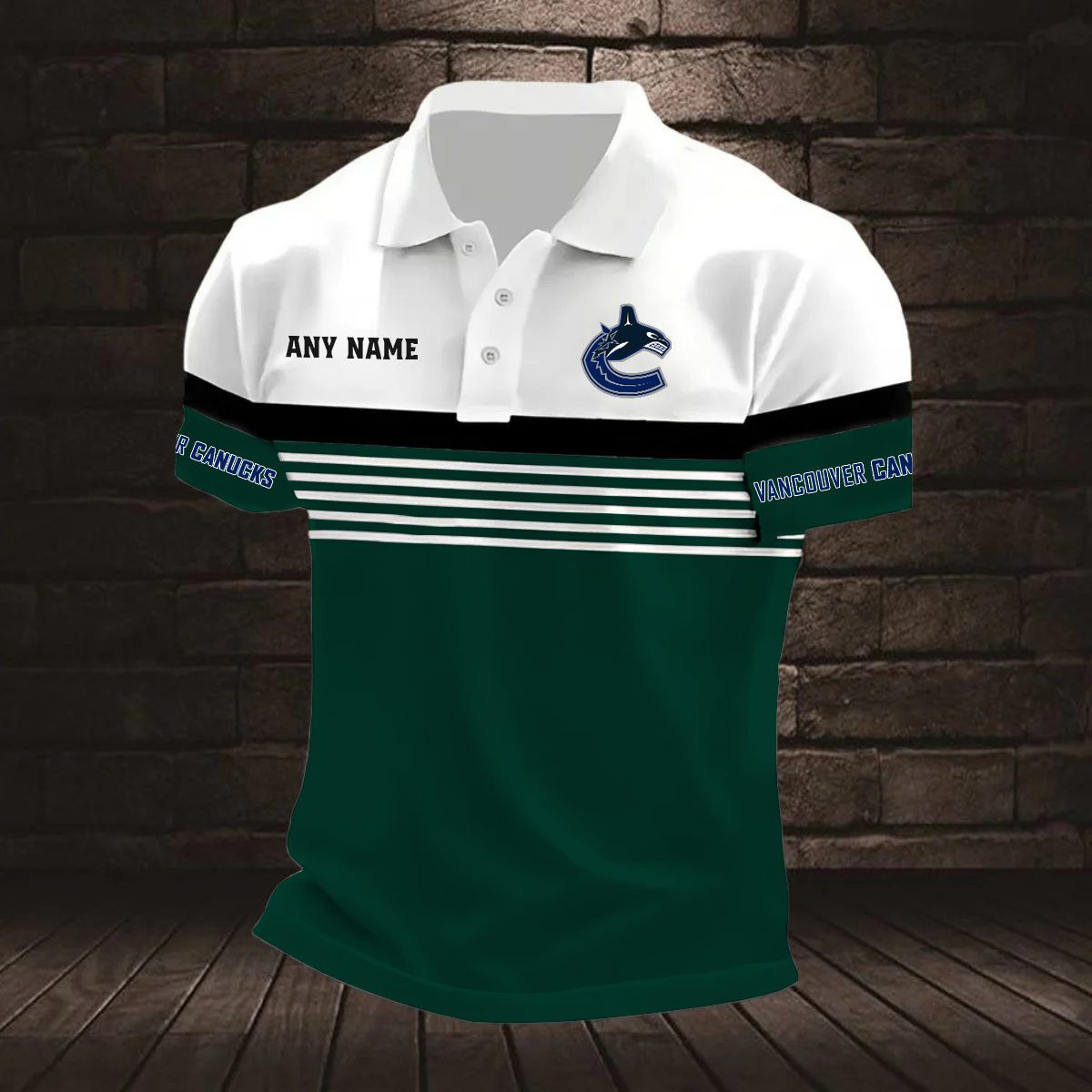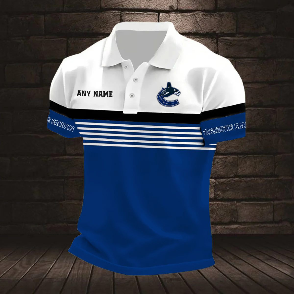 NHL Vancouver Canucks Personalized Name Stripped Multi Color Polo Design ST2501