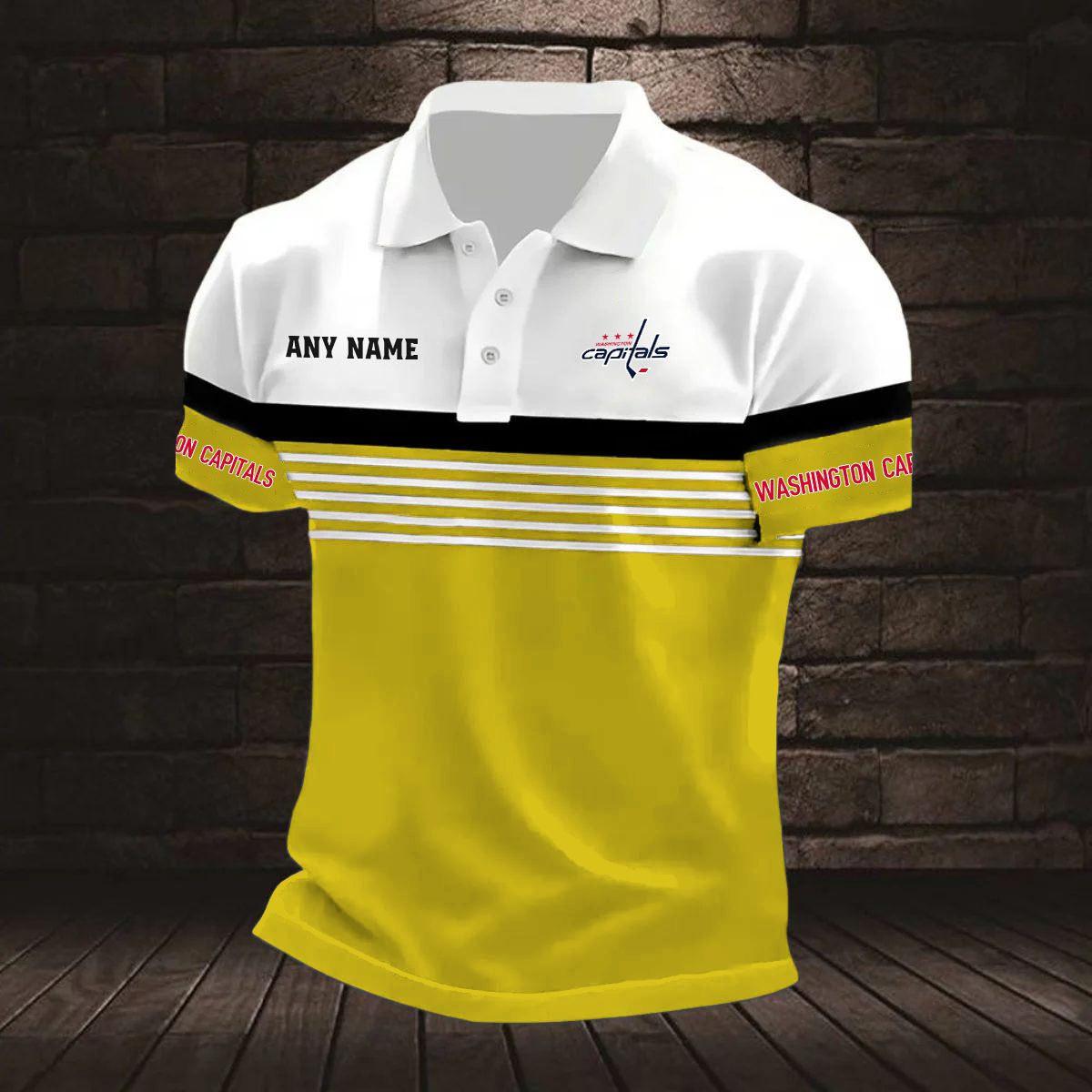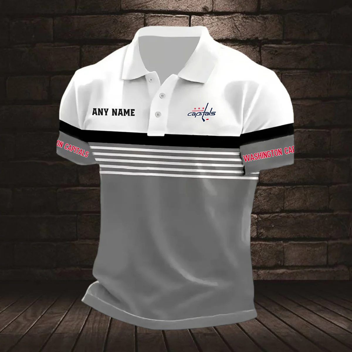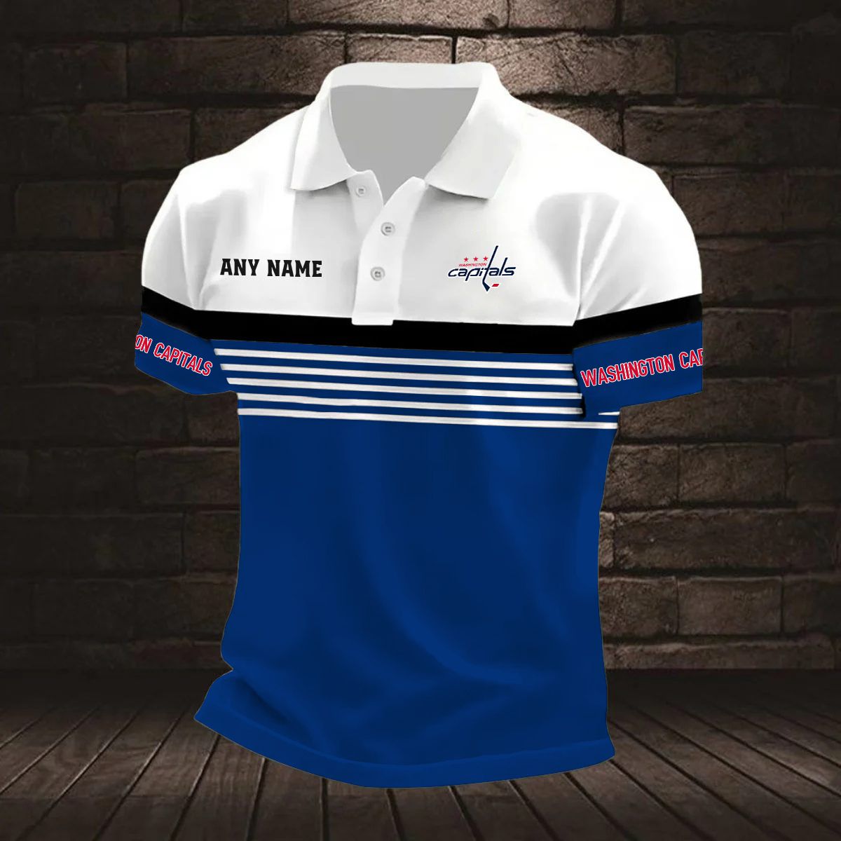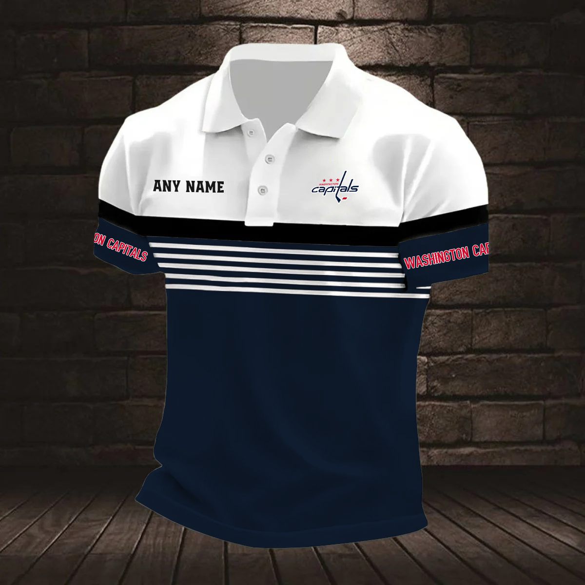 NHL Washington Capitals Personalized Name Stripped Multi Color Polo Design ST2501