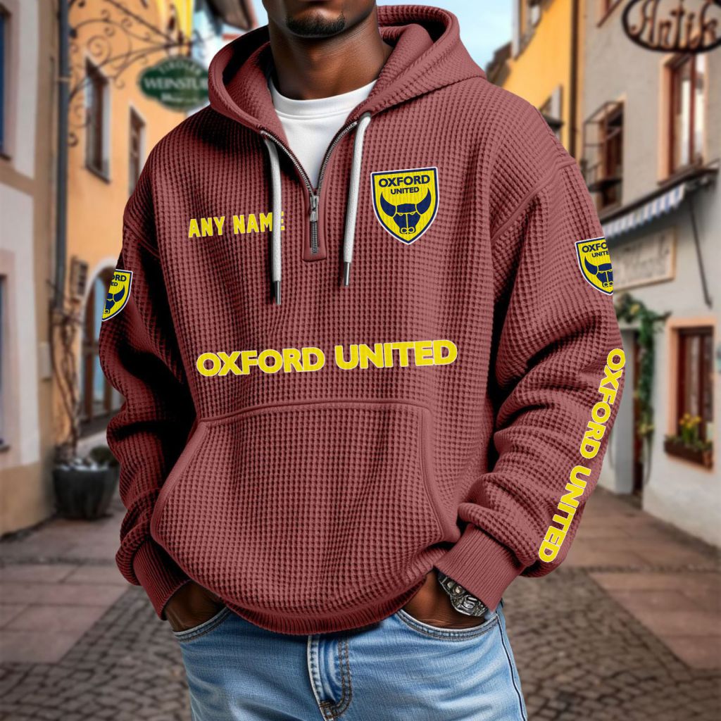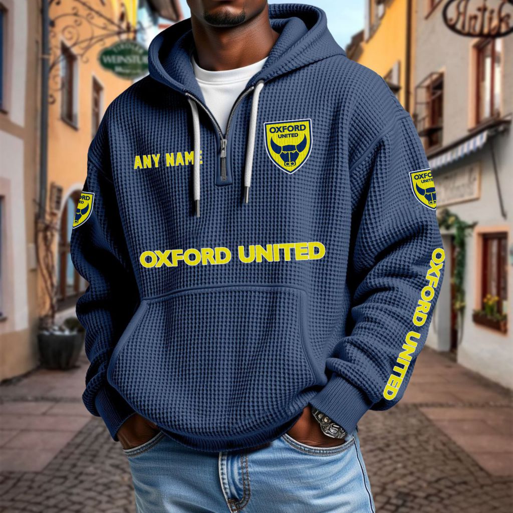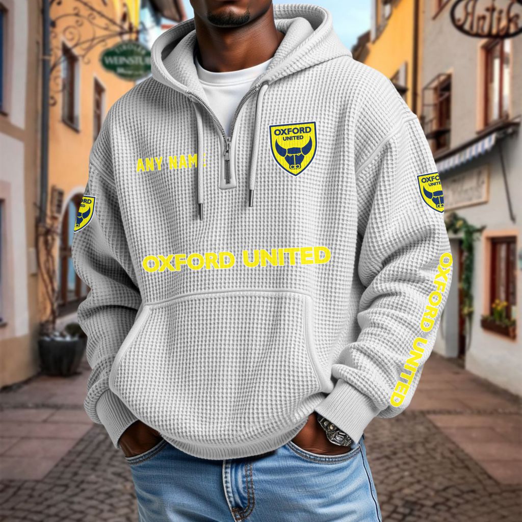 Oxford United Personalized Name Waffle Quarter Zip Hoodie Design ST2501