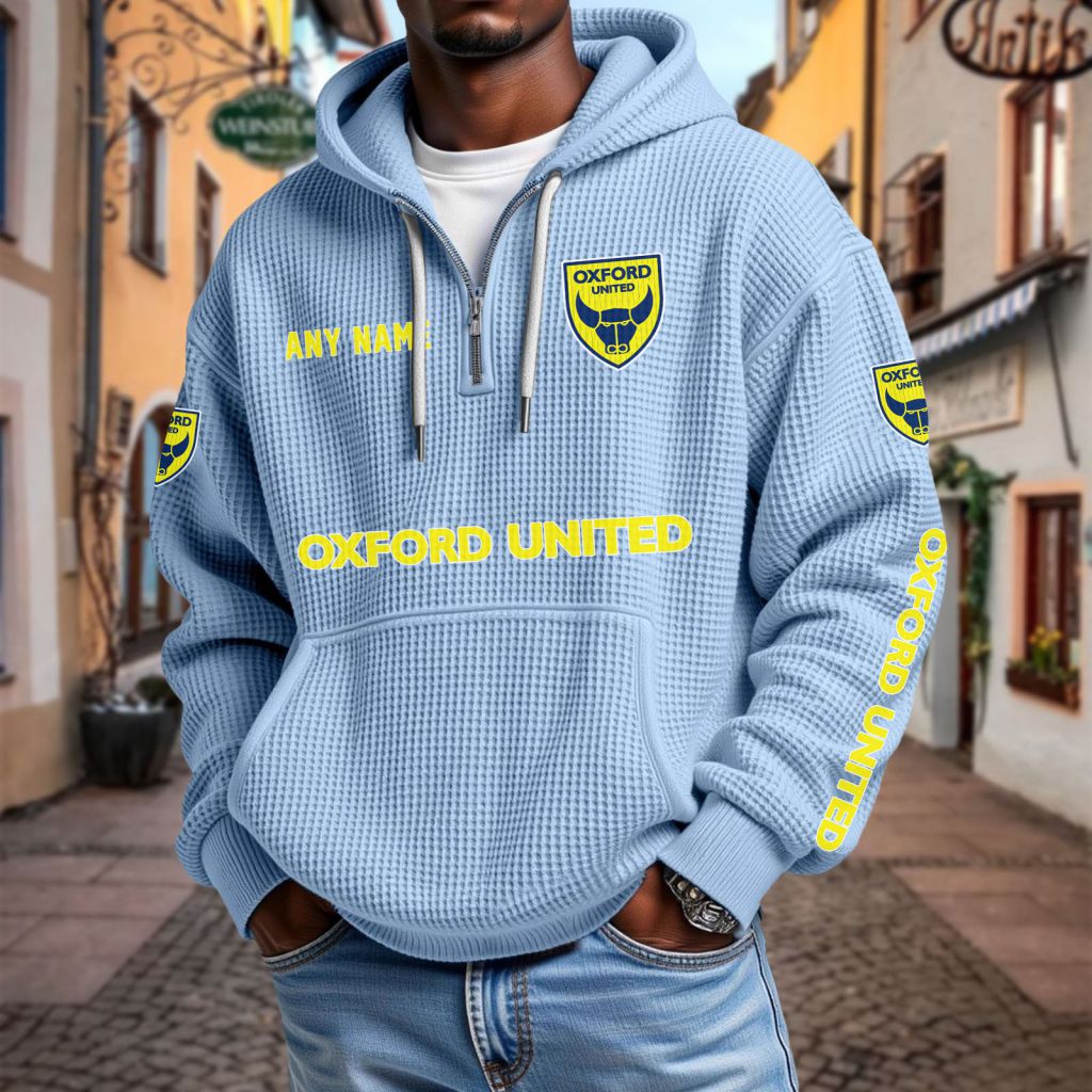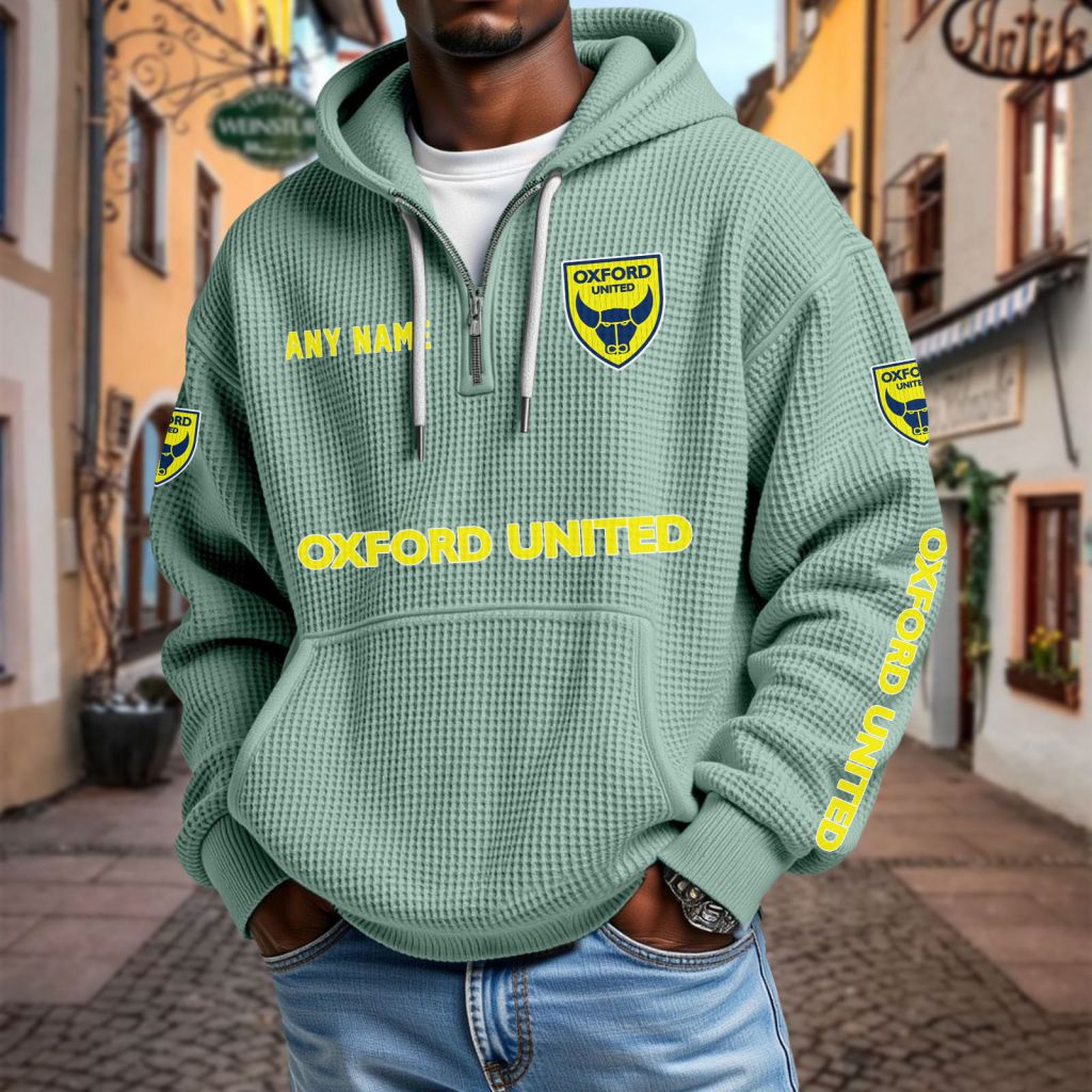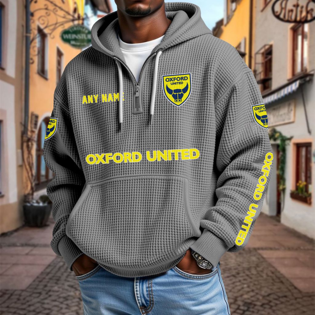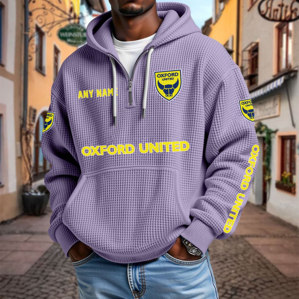 Oxford United Personalized Name Waffle Quarter Zip Hoodie Design ST2501