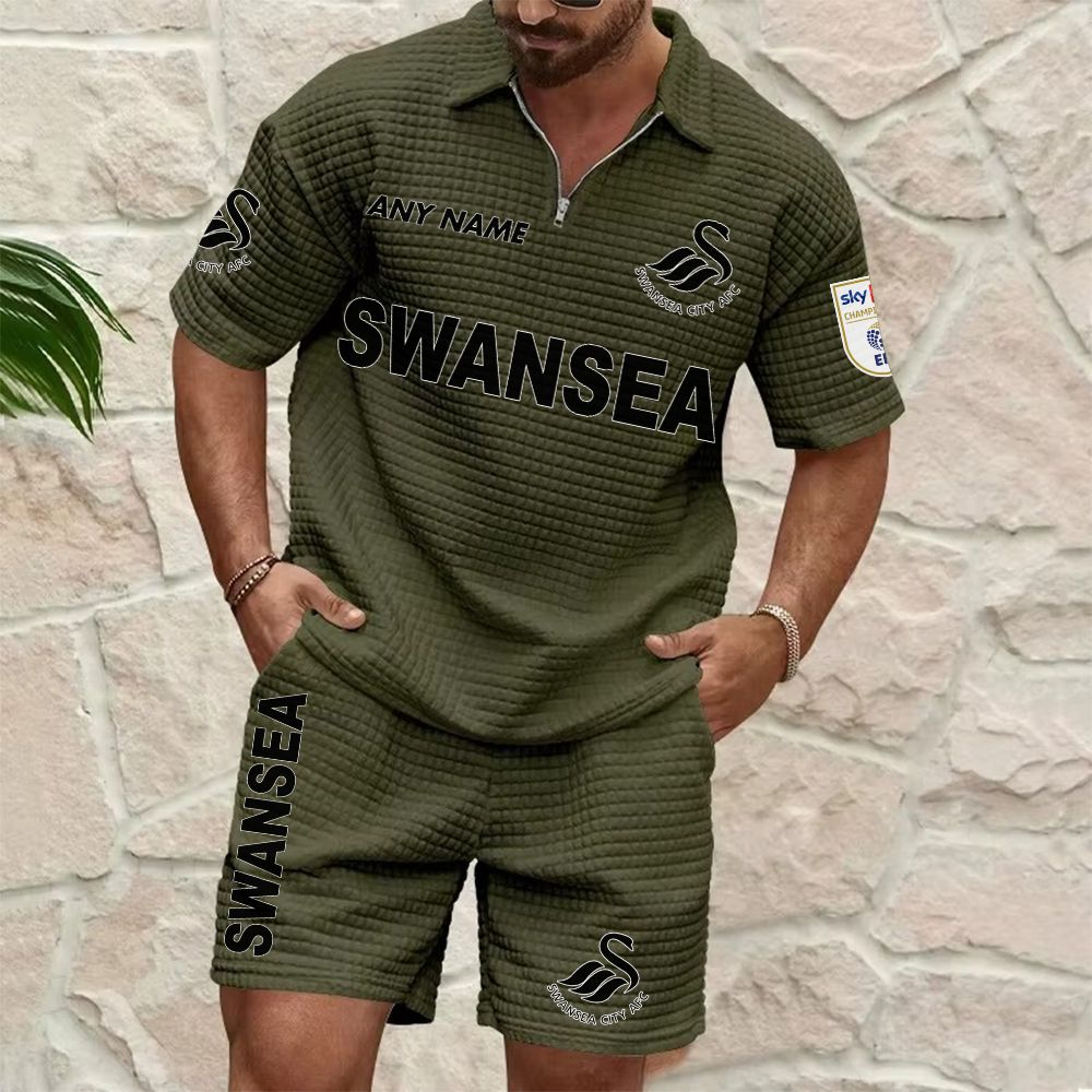 Swansea City Personalized Name Waffle Zip Polo Set ST2601